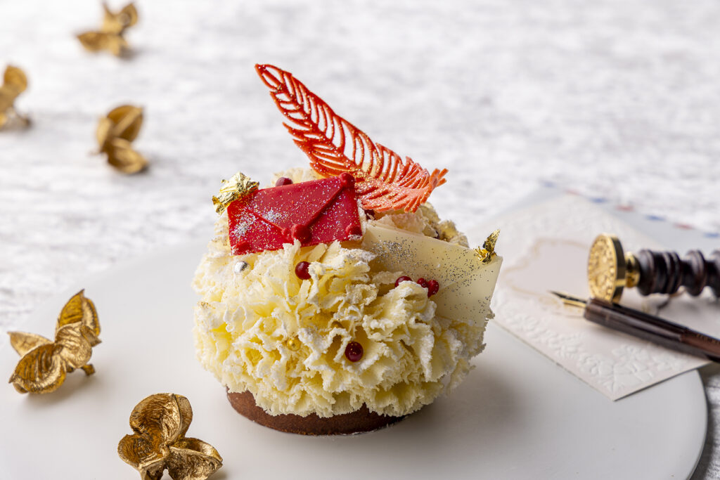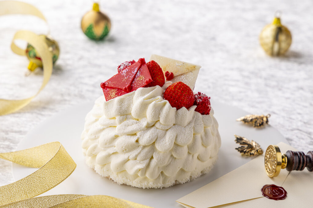 ジューシーないちごと自家製ミックスベリージャム、フロマージュブラン入りの軽やかなクリームが織りなす上品な甘さ。トップには艶やかな苺と“手紙”モチーフのチョコレートを飾り、世代を問わず愛される一品に。