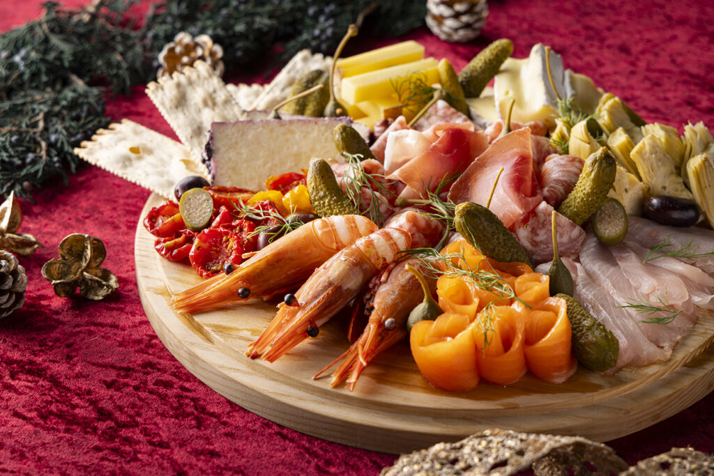 イベリコ豚の生ハムやサーモンなどを詰め合わせた前菜セット