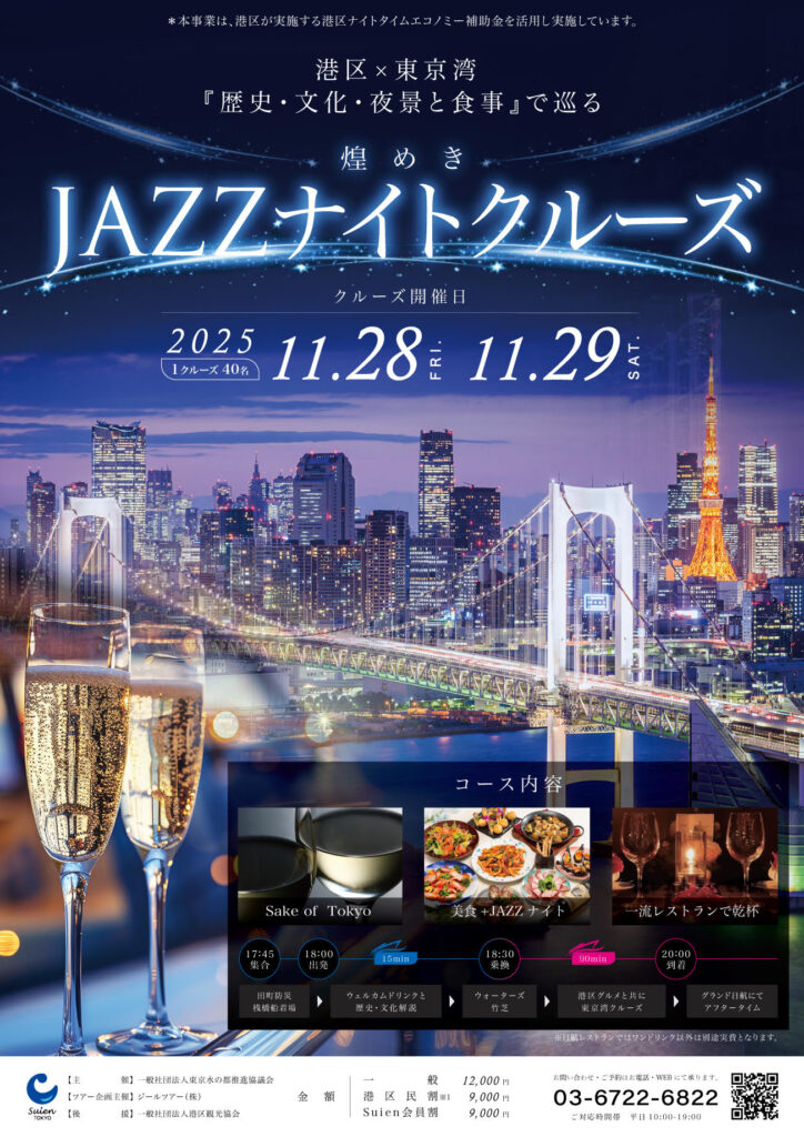 澄んだ冬の夜空に東京の夜景が輝く11月末、港区と東京湾を舞台にした特別なクルーズイベント「煌めきJAZZナイトクルーズ」が開催されます。