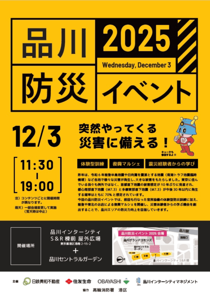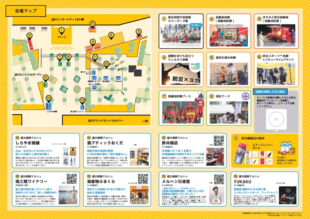 そんな今こそ、自分の身を守る知識と備えを強化するため、品川防災イベント2025を開催します。今年は、官民協働の体験型防災訓練に加え、能登や東北の復興マルシェも登場。